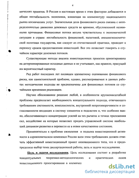 Цель и задачи исследования. Цель исследования состоит в разработке концептуальных теоретико-методологических и практических основ инвестиционного проектирования в космической отрасли в условиях риска и