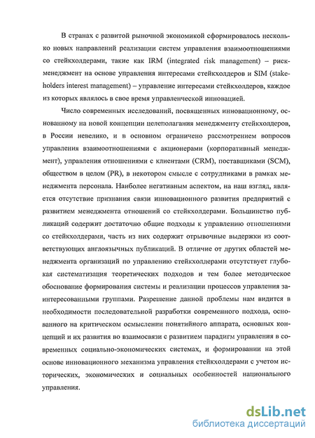 Глава I. Теоретические и практические предпосылки трансформации управления отношениями со стейкхолдерами на крупных предприятиях как управленческой инновации 11
