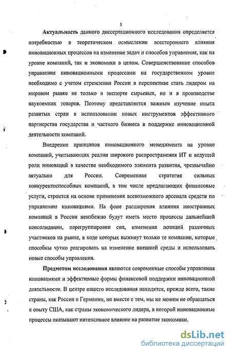 Предметом исследования являются современные способы управления инновациями и эффективные формы финансовой поддержки инновационной деятельности. В центре нашего исследования находятся, прежде всего, такие страны, как Россия и Германии, но вместе с тем, мы не можем не обращаться к опыту США, как страны экономического лидера, в которой инновационные процессы оказывают интенсивное влияние на развитие экономики.