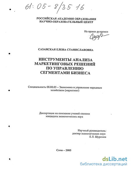 Необходимость комплексного рассмотрения проблематики формирования системы инструментов анализа маркетинговых решений по управлению сегментами бизнеса, поддерживающих их информационных технологий и методологии их применения в различных хозяйственных ситуациях, в условиях неопределенности исходных данных обусловили выбор темы и основных направлений исследования.