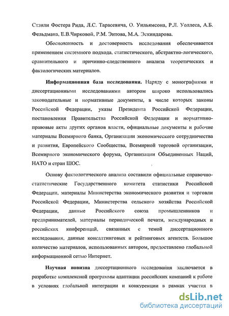 Теоретическая и методологическая основа исследования. В качестве теоретической и методологической базы исследования использовались труды российских и зарубежных ученых, в том числе Б. Альстрэнда, И. Ансоффа, А.М.Аракеляна, И.Ю. Беляевой, Б. Гаррета, А.А. Дагаева, П. Дюссожа, СВ. Емельянова, И. Г. Владимировой, С. Карделла, М. Кастельса, Е.А. Карпухиной, Р. Коуза, Дж. Лэмпела, А.Ляско, А.И. Майзеля, Г. Минцберга, Б.З. Мильнера, А.Г. Мовсесяна, Р.Б.Ноздревой, Т.И. Ойзермана, И.А. Петровой, С.Э. Пивоварова, Р. Познера, М. Портера, Стэнли Фостера Рида, Л.С. Тарасевича, О. Уильямсона, Р.Л. Уоллеса, А.Б. Фельдмана, Е.В.Чирковой, P.M. Энтова, М.А. Эскиндарова.