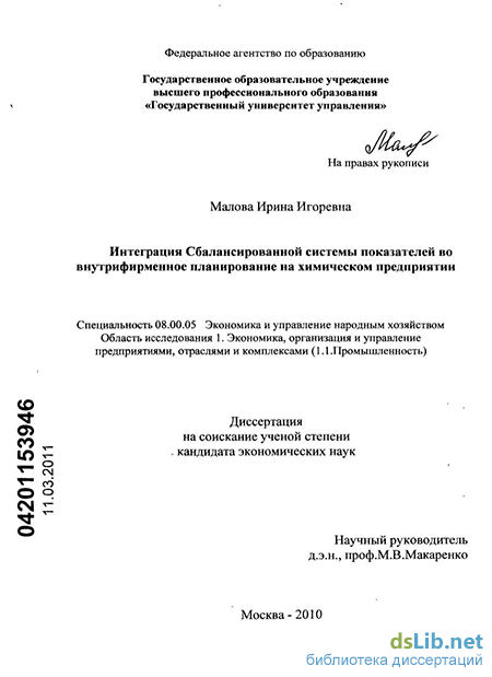 Целью диссертационного исследования является разработка теоретических и практических рекомендаций по эффективной интеграции Сбалансированной системы показателей во внутрифирменное планирование на химических предприятиях.