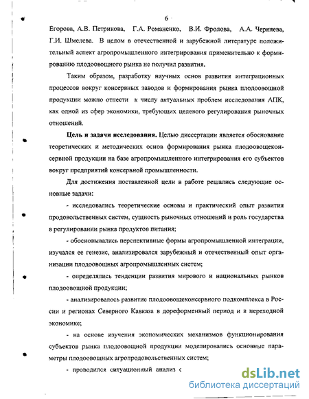 Егорова, А.В. Петрикова, Г.А. Романенко, В.И. Фролова, А.А. Черняева, Г.И. Шмелева. В целом в отечественной и зарубежной литературе положительный аспект агропромышленного интегрирования применительно к формированию плодоовощного рынка не получил развития.