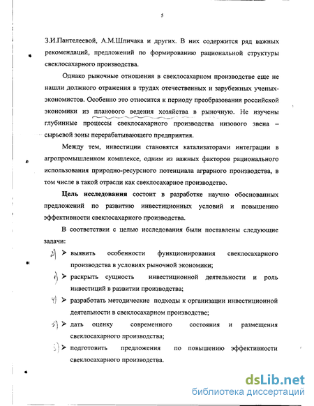 Цель исследования состоит в разработке научно обоснованных предложений по развитию инвестиционных условий и повышению эффективности свеклосахарного производства.