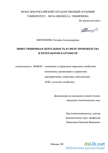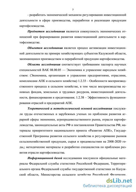 ГЛАВА 3. Основные направления инвестиционной деятельности в сфере производства, переработки и реализации продукции картофелеводства .822