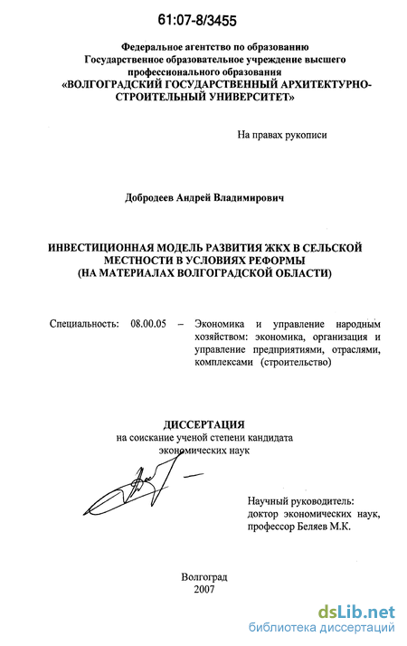 Степень научной разработанности проблемы. В той или иной степени проблемам управления ЖКХ и путям повышения эффективности функционирования этой отрасли посвящали свои работы такие ученые, как А.Г. Козлюк, Л.Н. Чернышев, Е.А. Левитская, И.В. Бычковский, Ф.Г. Таги-Заде, А.Н. Ряховская, Г.В. Гутман, М.К. Беляев, А.Ю. Жданькова, B.C. Боголюбов, B.C. Чекалин, В.Б. Зотов. Некоторые вопросы реформирования, функционирования и управления ЖКХ в сельской местности получили отражение в трудах И.В. Ершова, A.M. Кирилюка, В.В. Елисеева, И.В. Колесникова, В.Ю. Прокофьева.