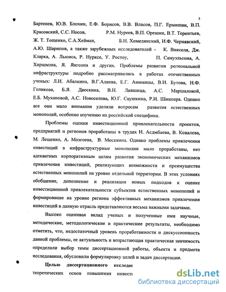 Проблемы оценки инвестиционной привлекательности проектов, предприятий и регионов проработаны в трудах Н. Асдмбаева, В. Ковалева, М. Лещенко, А. Мозгоева, В. Москвина. Однако проблемы привлечения инвестиций в инфраструктурные монополии мало проработаны, нет адекватных корпоративным целям развития экономических механизмов привлечения инвестиций, реализующих возможности и преимущества естественных монополий на уровне отдельной территории. В этих условиях обобщение, дополнение и реализация новых подходов к оценке инвестиционной привлекательности субъектов естественных монополий и формирование на уровне региона эффективных механизмов привлечения инвестиций в данную отрасль представляются весьма важными задачами.