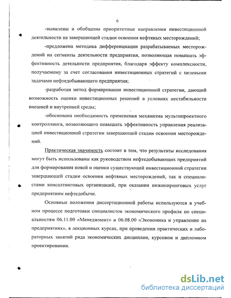 -разработка механизма мультипроектного контроллинга для повышения эффективности реализации инвестиционной стратегии завершающей стадии освоения нефтяных месторождений.