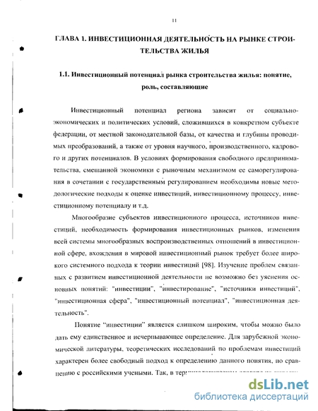 ГЛАВА 1. Инвестиционная деятельность на рынке строительства жилья. 11