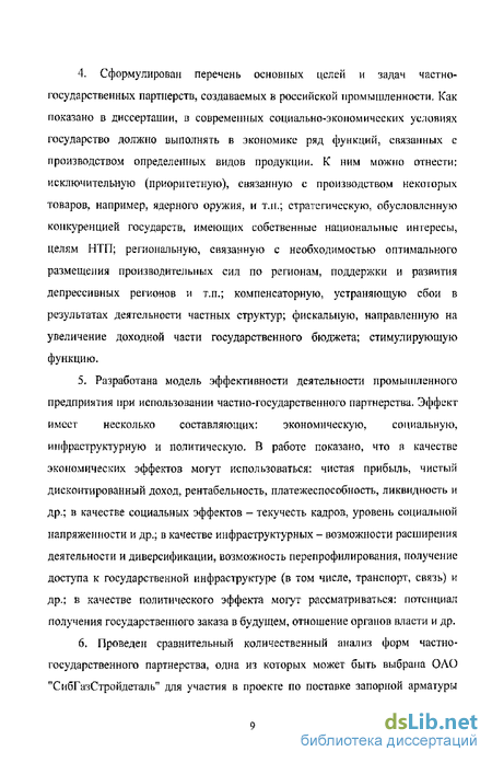 Научная новизна диссертационного исследования заключается в том, что в нем на основе многоуровневой классификации форм частно-государственного партнерства сформулированы принципы и рекомендации повышения эффективности деятельности промышленных предприятий, в том числе за счет использования концессионных договоров и сравнительного анализа различных форм партнерства с использованием экономического, социального, инфраструктурного и политического эффектов. Научная новизна содержится в следующих положениях, выносимых на защиту;