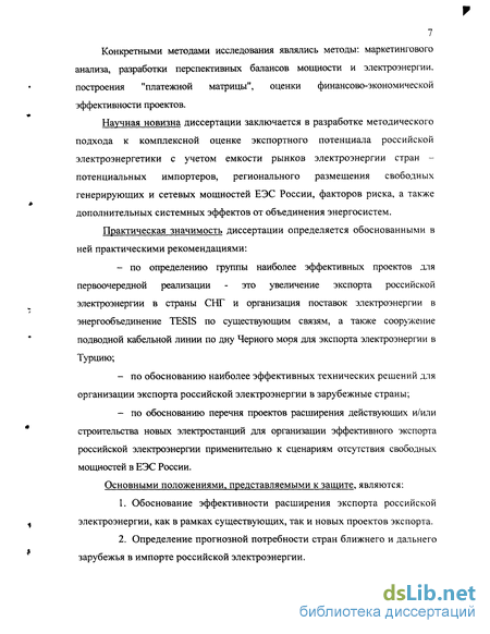 Научная новизна диссертации заключается в разработке методического подхода к комплексной оценке экспортного потенциала российской электроэнергетики с учетом емкости рынков электроэнергии стран -потенциальных импортеров, регионального размещения свободных генерирующих и сетевых мощностей ЕЭС России, факторов риска, а также дополнительных системных эффектов от объединения энергосистем.
