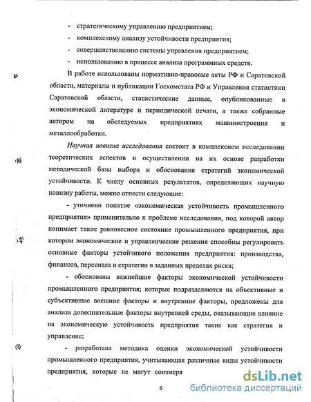 разработана методика оценки экономической устойчивости промышленного предприятия, учитывающая различные виды устойчивости предприятия, которые не могут соизмеряться и должны соотносится с нормативной базой, в качестве которой автор предлагает линию безубыточности предприятий, данная методика позволяет более точно оценивать уровень экономической устойчивости;