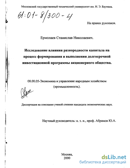 ГЛАВА 1. Проблема разнородности капитала при формировании инвестиционной программы .