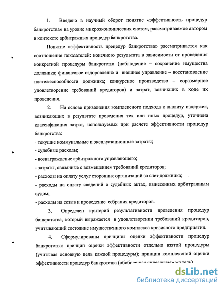 Научная новизна результатов исследования и вклад автора в разработку проблемы заключается в разработке теоретических и методических подходов оценки и повышения эффективности применяемых процедур банкротства на промышленных предприятиях.
