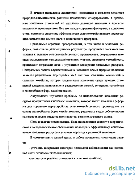 Цель я задачи исследования. Цель исследования состоит в теоретическом и методологическом обосновании подходов к эффективному использованию земельных ресурсов в условиях перехода к рыночной экономике.