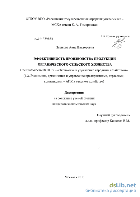 Однако вопросы эффективности производства продукции органического сельского хозяйства освещены недостаточно, что и послужило причиной выбора темы исследования.