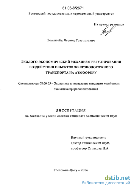 Научная новизна исследования заключается в совершенствовании инструментария эколого-экономического регулирования воздействия объектов железнодорожного транспорта на атмосферу.