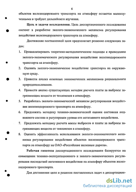Цель и задачи исследования. Цель диссертационного исследования состоит в разработке эколого-экономического механизма регулирования воздействия железнодорожного транспорта на атмосферу.