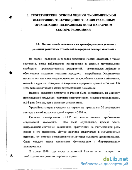 1. Теоретические основы оценки экономической эффективности функционирования различных организационно-правовых форм в аграрном секторе экономики