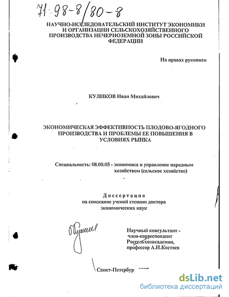 Теоретические и прикладные аспекты исследования экономической эффективности сельскохозяйственного производства, его продуктовых подкомплексов в дореформенный период и в современных переходных условиях рассматриваются в работах А.И.Алтухова, В.Р.Боева, рї.Н.Буздалова, В.П.Василенко, Е.С.Оглоблина, В.А.Сдобнова, В.В.Милосердова, А.А.Никонова и других экономистов-аграрников. Проблемы эффективности в плодово-ягодном подкомплексе отражены в исследованиях А.И.Глазунова, В.И.Кашина, А.С.Косякина, А.И.Минакова, К.Х.Ибрагимова, И.П.Шаляпиной, других авторов. Однако подход к изучению этой проблемы с позиций рыночной экономики, ее специфики в условиях проводимых реформ в имеющихся разработках по плодово-ягодному подкомплексу не всегда последовательно реализуется, что во многом связано с недооценкой предварительного рассмотрения самой концепции, закономерностей и социально-экономических функций рынка.