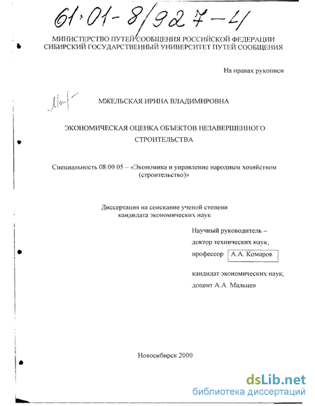 ГЛАВА 2. Методика экономической оценки объектов незавершенного строительства 61