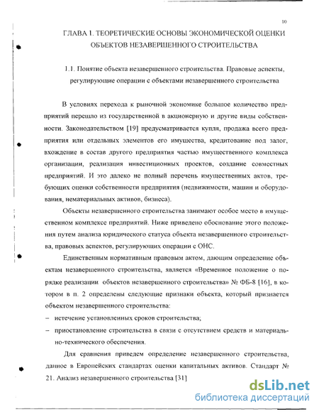 ГЛАВА 1. Теоретические основы экономической оценки объектов незавершенного строительства 10