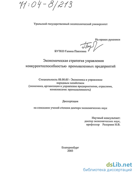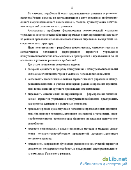 Предметом исследования являются научно-методологические и методические проблемы формирования экономической стратегии управления конкурентоспособностью промышленных предприятий (на примере лесопромышленного комплекса) в условиях становления в России рыночных отношений.