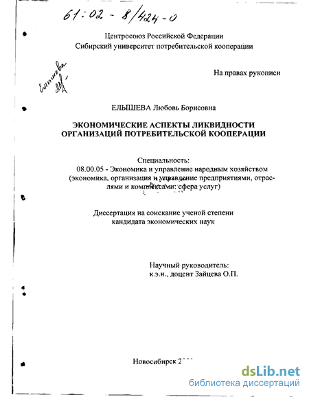 Научная новизна диссертационного исследования состоит в формулировании и решении проблемы формирования механизма управления ликвидностью организаций потребительской кооперации в условиях переходного периода.