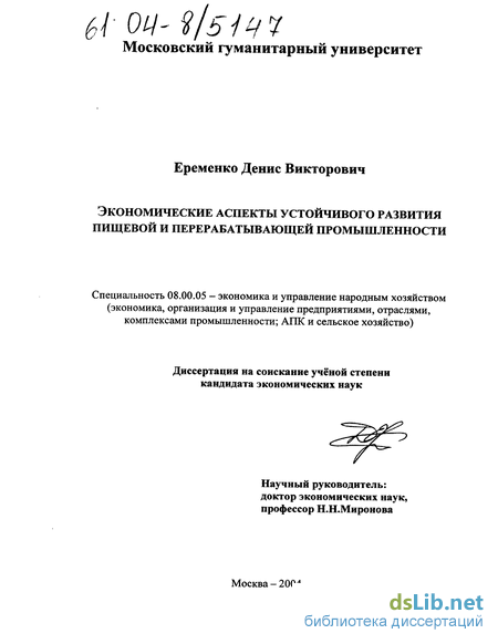 уточнить теоретические и методологические основы устойчивого развития пищевой и перерабатывающей промышленности;