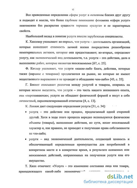 Различные аспекты экономических процессов сферы услуг рассматривались в работах зарубежных ученых: Г. Беквит, К. Гренроос, Д.