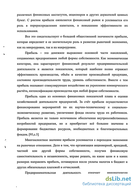 Прибыль один из основных финансовых показателей плана и оценки хозяйственной деятельности предприятий. За счёт прибыли осуществляется финансирование мероприятий по их научно-техническому и социально-экономическому развитию, увеличению фонда оплаты труда их работников. Прибыль является не только источником обеспечения внутрихозяйственных потребностей предприятия, но и приобретает всё большее значение в формировании бюджетных ресурсов, внебюджетных и благотворительных фондов. [95,с.5]