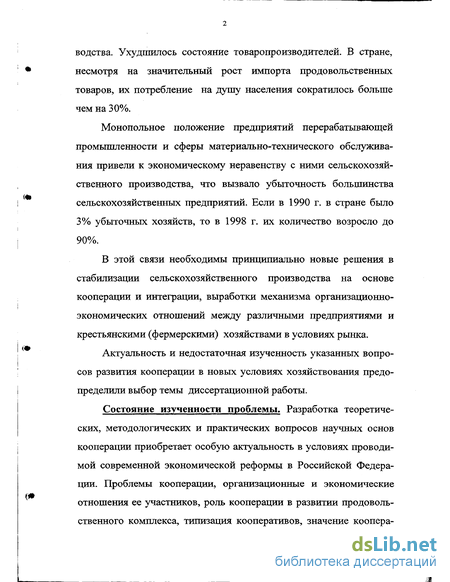 Состояние изученности проблемы. Разработка теоретических, методологических и практических вопросов научных основ кооперации приобретает особую актуальность в условиях проводимой современной экономической реформы в Российской Федерации. Проблемы кооперации, организационные и экономические отношения ее участников, роль кооперации в развитии продовольственного комплекса, типизация кооперативов, значение коопера-