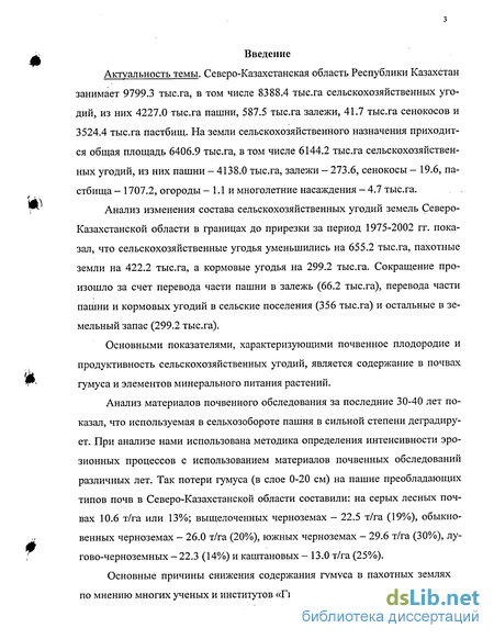 Актуальность темы. Северо-Казахстанская область Республики Казахстан занимает 9799.3 тыс.га, в том числе 8388.4 тыс.га сельскохозяйственных угодий, из них 4227.0 тыс.га пашни, 587.5 тыс.га залежи, 41.7 тыс.га сенокосов и 3524.4 тыс.га пастбищ. На земли сельскохозяйственного назначения приходится общая площадь 6406.9 тыс.га, в том числе 6144.2 тыс.га сельскохозяйственных угодий, из них пашни - 4138.0 тыс.га, залежи - 273.6, сенокосы - 19.6, пастбища - 1707.2, огороды - 1.1 и многолетние насаждения - 4.7 тыс.га.