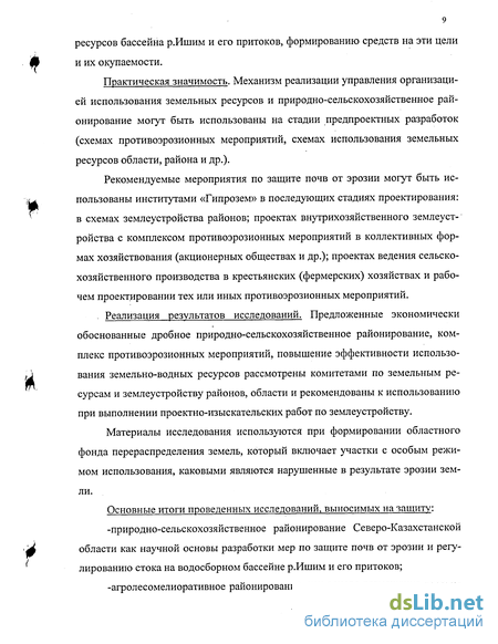 -разработан комплекс противоэрозионных мероприятий, обеспечивающий почвозащитный эффект сельскохозяйственных земель, регулирующий сток на водосборной площади р.Ишим и малых рек питающих ее;