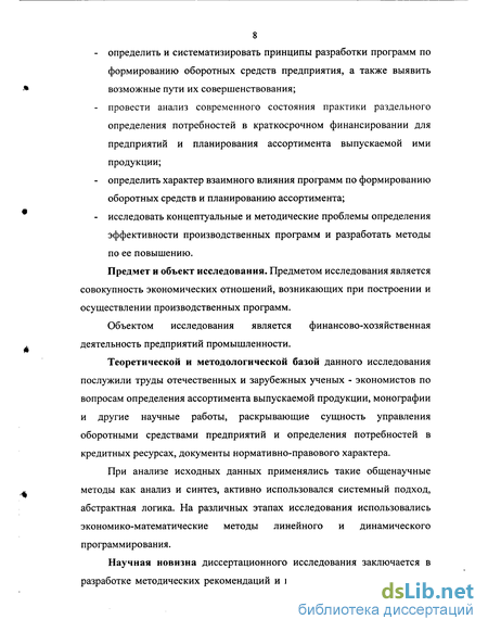 Теоретической и методологической базой данного исследования послужили труды отечественных и зарубежных ученых - экономистов по вопросам определения ассортимента выпускаемой продукции, монографии и другие научные работы, раскрывающие сущность управления оборотными средствами предприятий и определения потребностей в кредитных ресурсах, документы нормативно-правового характера.