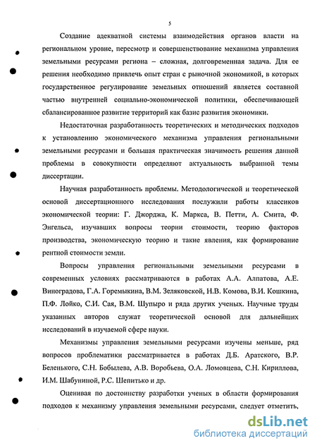 Цель и задачи исследования. Целью диссертационной работы является комплексное исследование и обоснование конкретных направлений совершенствования экономического механизма управления региональными земельными ресурсами, основанного на отечественном и зарубежном опыте, учитывающего интересы территории.