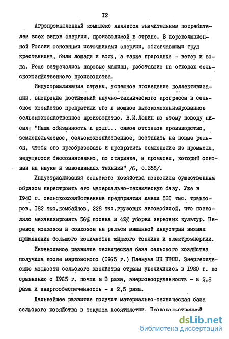 Индустриализация страны, успешное проведение коллективизации, внедрение достижений научно-технического прогресса в сельское хозяйство превратили его в мощное высокомеханизированное сельскохозяйственное производство. В.И.Ленин по этому поводу писал: "Наша обязанность и долг... самое отсталое производство, земледельческое, сельскохозяйственное, поставить на новые рельсы, чтобы его преобразовать и превратить земледелие из промысла, ведущегося бессознательно, по старинке, в промысел, который основан на науке и завоеваниях техники" /6, с.358/.