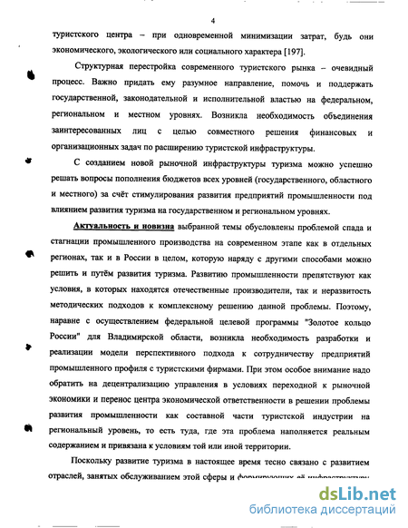 Актуальность и новизна выбранной темы обусловлены проблемой спада и стагнации промышленного производства на современном этапе как в отдельных регионах, так и в России в целом, которую наряду с другими способами можно решить и путём развития туризма. Развитию промышленности препятствуют как условия, в которых находятся отечественные производители, так и неразвитость методических подходов к комплексному решению данной проблемы. Поэтому, наравне с осуществлением федеральной целевой программы "Золотое кольцо России" для Владимирской области, возникла необходимость разработки и реализации модели перспективного подхода к сотрудничеству предприятий промышленного профиля с туристскими фирмами. При этом особое внимание надо обратить на децентрализацию управления в условиях переходной к рыночной экономики и перенос центра экономической ответственности в решении проблемы развития промышленности как составной части туристской индустрии на региональный уровень, то есть туда, где эта проблема наполняется реальным содержанием и привязана к условиям той или иной территории.