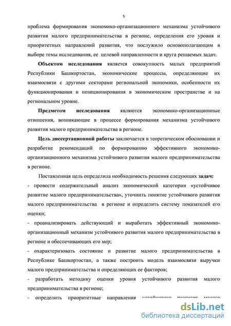 Предметом исследования являются организационно-экономические отношения, возникающие в процессе формирования механизма устойчивого развития малого предпринимательства и его обеспечения в регионе.