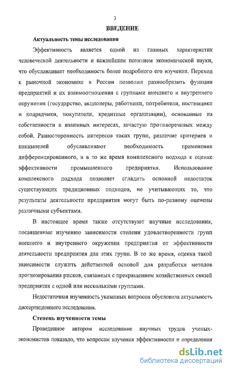 Тесное взаимодействие предприятий с группами их внешнего и внутреннего окружения в условиях рыночной экономики и разносторонность интересов, преследуемых в рамках такого взаимодействия, требует комплексного анализа проблемы оїденки эффективности, что и обусловило необходимость проведения исследования в рамках диссертационной работы. Сложность исследуемой проблемы, противоречивость интересов и оценок групп внешнего и внутреннего окружения, важность повышения эффективности деятельности предприятия, наличие неизученных вопросов, острая необходимость дальнейших научно-теоретических, методических и