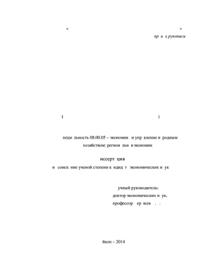 Соответствие темы диссертации паспорту специальности ВАК РФ. Область исследования соответствует требованиям паспорта специальностей ВАК 08.00.05. – Экономика и управление народным хозяйством: (региональная экономика) 3.12. Региональные особенности социально-экономического развития; типы регионов (развитые и депрессивные, доноры и реципиенты, монопродуктовые и диверсифицированные, с крупными городскими агломерациями и без них и др.), методические проблемы классификации и прикладные исследования особенностей развития различных типов регионов. 3.15. Инструменты разработки перспектив развития пространственных социально-экономических систем. Прогнозирование, форсайт, индикативное планирование, программы, бюджетное планирование, ориентированное на результат, целевые программы, стратегические планы. 3.22. Эффективность использования материальных и нематериальных факторов развития региональной экономики. Закономерности и особенности организации и управления экономическими структурами в регионах. Абсолютные и относительные преимущества региональных экономических кластеров.Исследование проблем производственной, транспортной, энергетической, социальной и рыночной инфраструктуры в регионах.