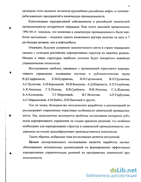 Тем не менее, большинство методических разработок и рекомендаций не рассматривает современные отраслевые особенности химической промышленности. Так, недостаточно исследуется проблема согласования интересов субъектов корпоративного управления на стадии принятия решений, что особенно необходимо для корпоративных структур в химической промышленности, создаваемых на основе градообразующих производственных комплексов.