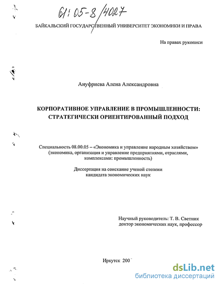 Рассмотрение российской специфики корпоративного управления в диссер