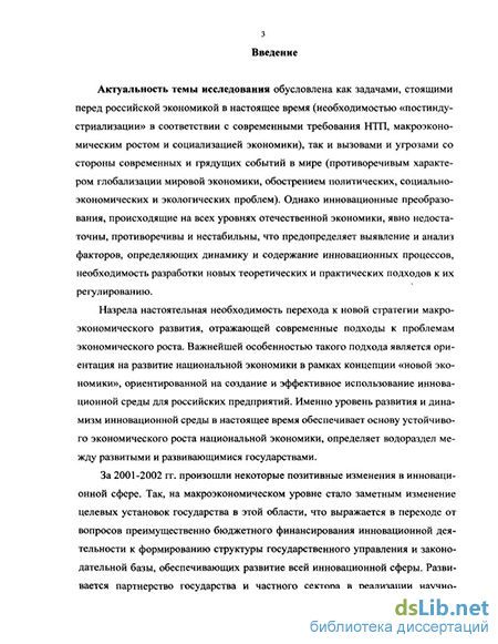 развития (например, недостаточность исследования макроэкономических факторов, определяющих динамику современных инновационных процессов; противоречивость стратегических и тактических подходов к решению этой проблемы на практике). Такое положение обусловливает необходимость дополнительной разработки теоретических и практических аспектов инновационного развития национальной экономики и ее субъектов, что предопределило выбор темы и предмета диссертационного исследования.