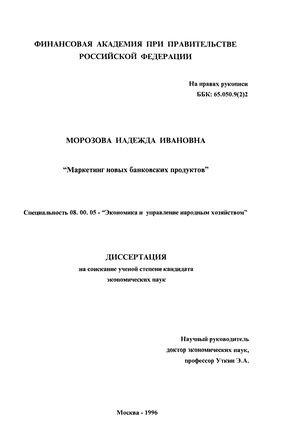 Материалы диссертации будут полезны для разработки единой концепции маркетинга новых банковских продуктов в современных условиях России.