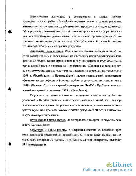 Апробация исследования. Основные положения диссертационной работы докладывались и обсуждались на ежегодных научно-технических конференциях Челябинского агроинженерного университета в 1999-2002 гг., на региональной научно-практической конференции «Селекция и семеноводство сельскохозяйственных культур и их маркетинг в современных условиях» в 1999 г. (Челябинск), на Всероссийской научно-практической конференции «Экономическая реформа в России: проблемы, дискуссии, пути развития» в 1999г. (Екатеринбург), на научной конференции ЧелГУ « Проблемы отечественной и мировой экономики» 1999 г. (Челябинск).