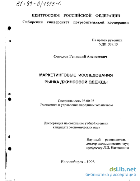 по предлагаемой автором диссертации методике и программе осуществлены маркетинговые исследования новосибирского рынка джинсовой одежды;