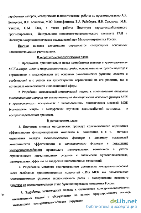Методологические основы исследования. Методологическую основу данного диссертационного исследования составили работы отечественной экономической школы, посвященные изучению многоуровневой экономики и взаимосвязи науки, техники и экономики, позволившие сформировать комплексный народнохозяйственный подход к исследованию и прогнозированию МСК.