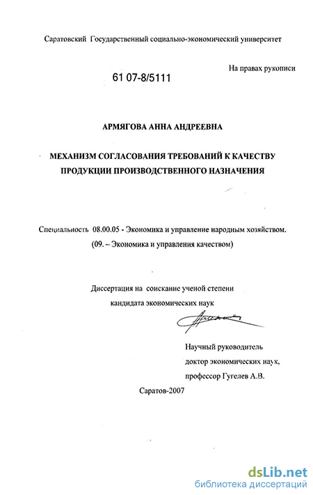 Актуальность задачи совершенствования механизма согласования требований к качеству продукции производственного назначения обусловлена совокупностью причин.
