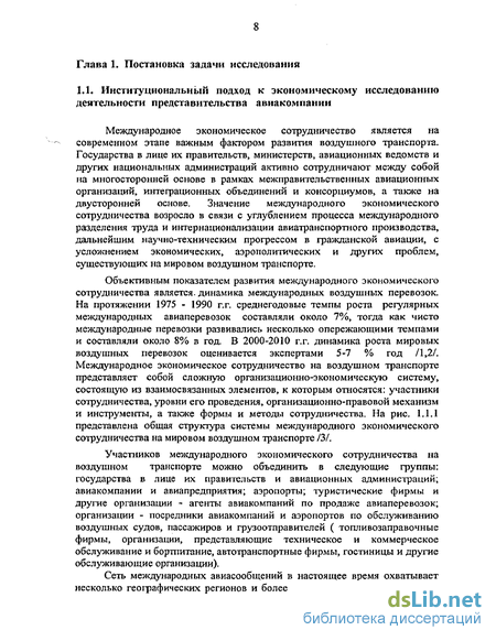 Методологическую и теоретическую основы исследования составляют научные труды отечественных авторов по проблемам экономики планирования, управления воздушным транспортом и внешнеэкономической деятельности, среди которых следует отметить работы Артамонова Б.В., Афанасьева В.Г., Абрамова В.А., Богачева Е.Н., Биржакова М.Б., Грязнова B.C., Громова Н.Н., Грачева Ю.Н., Горюнова М.В., Корниенко И.А., Косиченко Е.В., Костроминой Е.В., Лужанского Б.Е., Нечаева П.А., Рубанова А.А., Репиной О.В., Сидорова А.Т., Фридлянда А.А. и других. В работе использованы государственные нормативно-правовые акты, межправительственные соглашения, отраслевые инструктивные документы, материалы периодической литературы и др. При решении поставленных задач применялся институциональный подход, освещенный в трудах зарубежных авторов - лауреатов Нобелевской премии Р.Коуза, Д.Норта и др. Методической основой исследования явились методы экономического анализа; теории управления экономическими системами, экономического моделирования; управление воздушным транспортом.